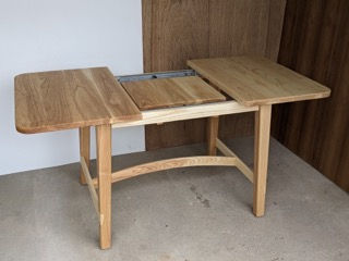 West ender extension table - this commission for a repeat client in Portland, fits their kitchen nook just right at 42”, and extends to 60” when guests arrive. Pretty sold on the smooth german made slides and hidden stabilizing hardware. The joinery at the tapered leg corners was key, and we did some visible joinery at the stretchers for your feet to enjoy. Gotta love the variety in ash wood.